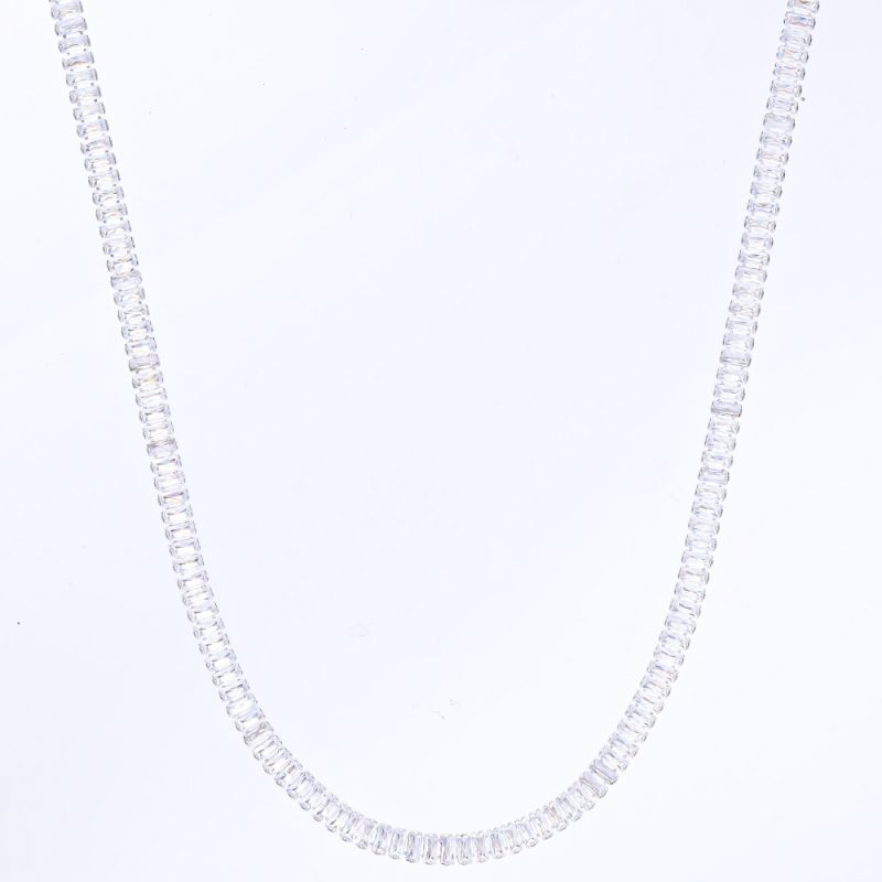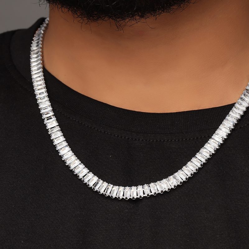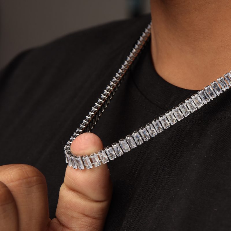 Cubic Zirconia Baguette Tennis Chain For Men